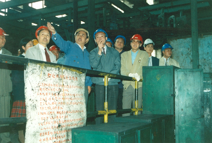 吳邦國(guó)副總理在廠區(qū)視察時(shí),同第一線工人親切握手、問候。應(yīng)酒鋼公司領(lǐng)導(dǎo)的邀請(qǐng),吳邦國(guó)在酒鋼簽名留念。