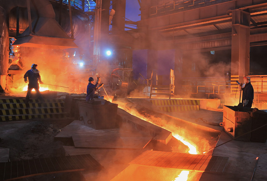 日前,宏興股份公司煉鐵廠1號(hào)、3號(hào)、4號(hào)、5號(hào)高爐按計(jì)劃停爐檢修后恢復(fù)生產(chǎn),6號(hào)高爐將于近日點(diǎn)火出鐵。為確保高爐按計(jì)劃點(diǎn)火開(kāi)爐,該廠做細(xì)做實(shí)準(zhǔn)備工作。專業(yè)部室科學(xué)組織協(xié)調(diào),盯緊開(kāi)爐進(jìn)度計(jì)劃,強(qiáng)化現(xiàn)場(chǎng)管理和設(shè)備隱患排查,堅(jiān)持安全第一,同時(shí),作業(yè)區(qū)提前對(duì)職工進(jìn)行了開(kāi)爐前的針對(duì)性培訓(xùn),確保高爐按時(shí)出鐵。目前,爐況穩(wěn)定順行,為沖刺全年任務(wù)奠定了基礎(chǔ)。圖為3號(hào)高爐出鐵現(xiàn)場(chǎng)。于兆龍攝