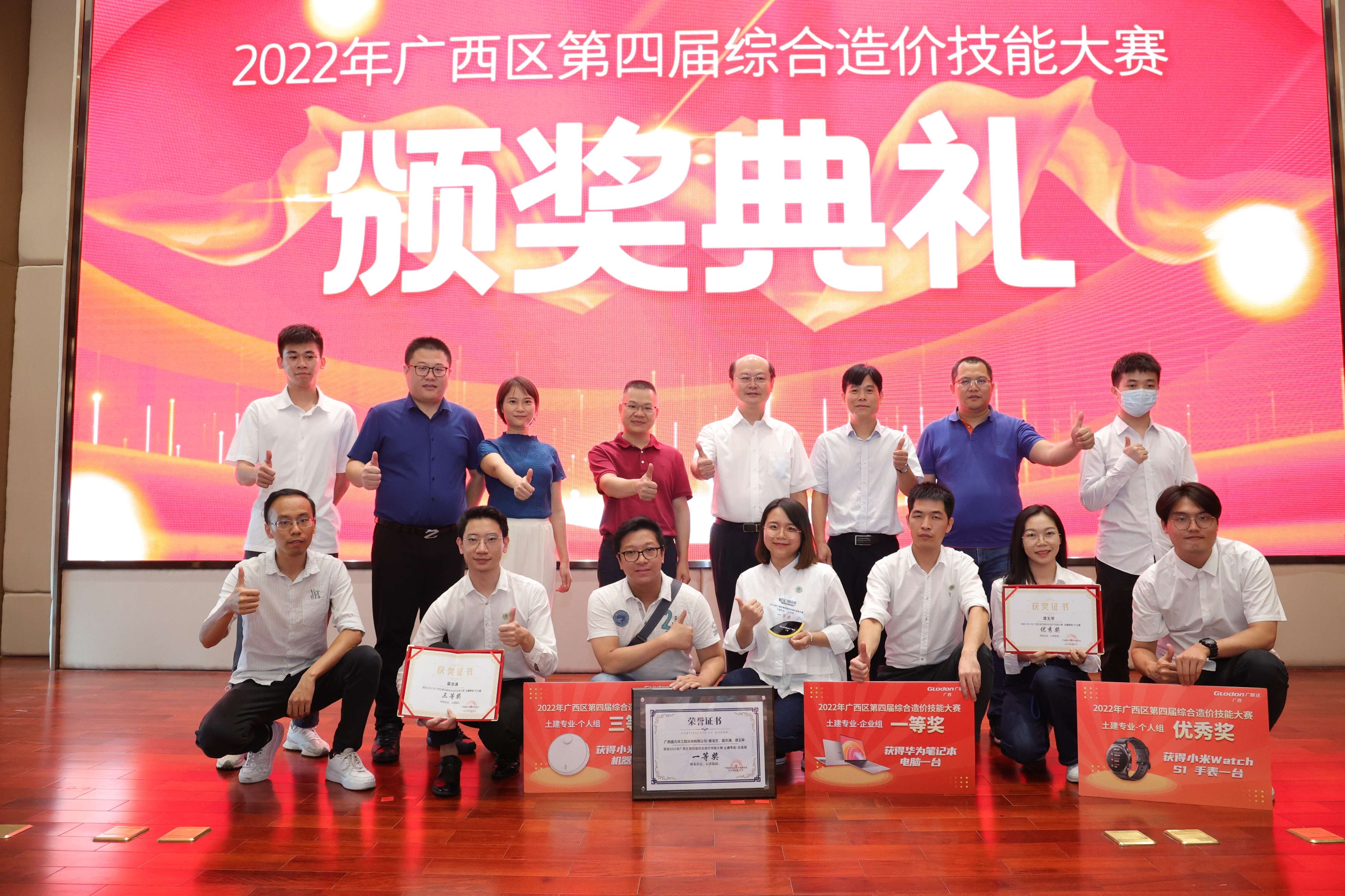 2022年廣西區(qū)第四屆綜合造價(jià)技能大賽的系列比賽已于9月15日圓滿落下帷幕,公司參賽團(tuán)隊(duì)以優(yōu)異的成績在本屆技能大賽中再次收獲榮譽(yù):榮獲土建專業(yè)-企業(yè)組一等獎,土建專業(yè)-個(gè)人組三等獎及優(yōu)秀獎。
