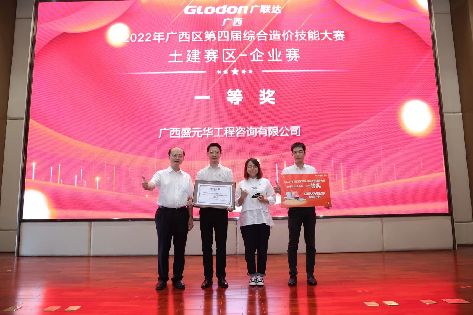 廣西工程造價(jià)管理站陳挺站長為我公司第一名組員頒獎并合影留念