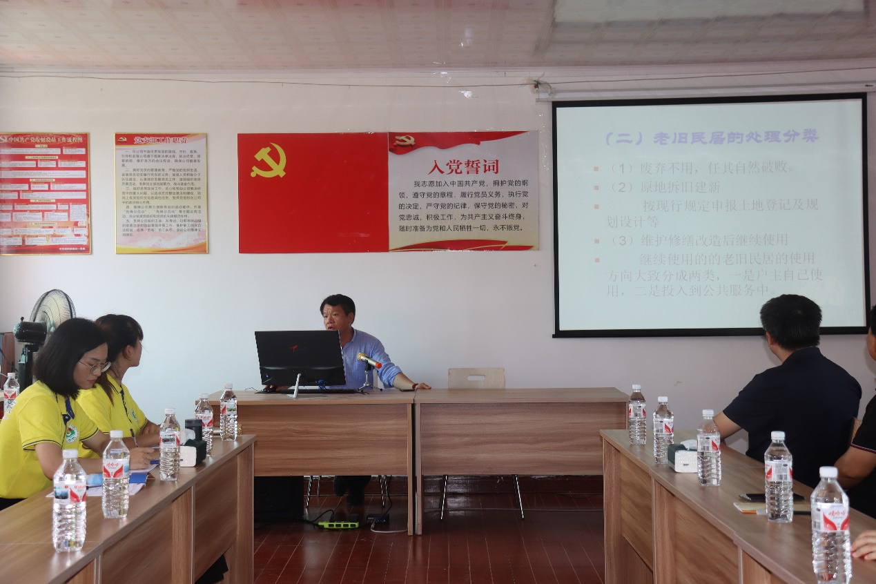 交流會上,廣西南寧市江南區(qū)江西鎮(zhèn)同江村第一書記鄧婷介紹了三江坡村的現(xiàn)狀及發(fā)展情況,同時感謝大家到三江坡村開展黨建活動。并表達(dá)了希望借助各方合力,推動多方資金、人才、服務(wù)等要素,使資源回歸農(nóng)村、流向農(nóng)業(yè)、造福農(nóng)民的殷切期望。 廣西建設(shè)工程造價管理協(xié)會黨支部書記王燕蓉對三江坡的發(fā)展提出可行性建議,她表示,三江坡的地理位置優(yōu)勢明顯,文化底蘊(yùn)深厚,但是交通便利方面還有很大的提升空間,建議先從道路標(biāo)識、交通地圖等方面著手改進(jìn)。 廣西盛元華工程咨詢有限公司常務(wù)副總經(jīng)理(黨支部書記)謝瑩春從古村落的開發(fā)運(yùn)營模式方面提出配適性點(diǎn)子,給出了許多詳細(xì)建議。 廣西建設(shè)職業(yè)技術(shù)學(xué)院管理工程系黨總支書記蔡明禮對實(shí)踐團(tuán)的工作予以肯定,感謝各方對實(shí)踐團(tuán)的大力支持,勉勵實(shí)踐團(tuán)繼續(xù)用青春和熱血為鄉(xiāng)村振興作出貢獻(xiàn)。 實(shí)踐團(tuán)指導(dǎo)老師郭海棠匯報團(tuán)隊(duì)開展情況,并聽取各單位提出的寶貴建議。 廣西盛元華工程咨詢有限公司BIM中心負(fù)責(zé)人覃永松開展《老舊民居的保護(hù)修繕及改造利用》主題講座,增加了實(shí)踐團(tuán)對老舊民居保護(hù)修繕及改造利用的知識儲備,啟發(fā)實(shí)踐團(tuán)對古建筑文化傳承進(jìn)行更深入的思考。