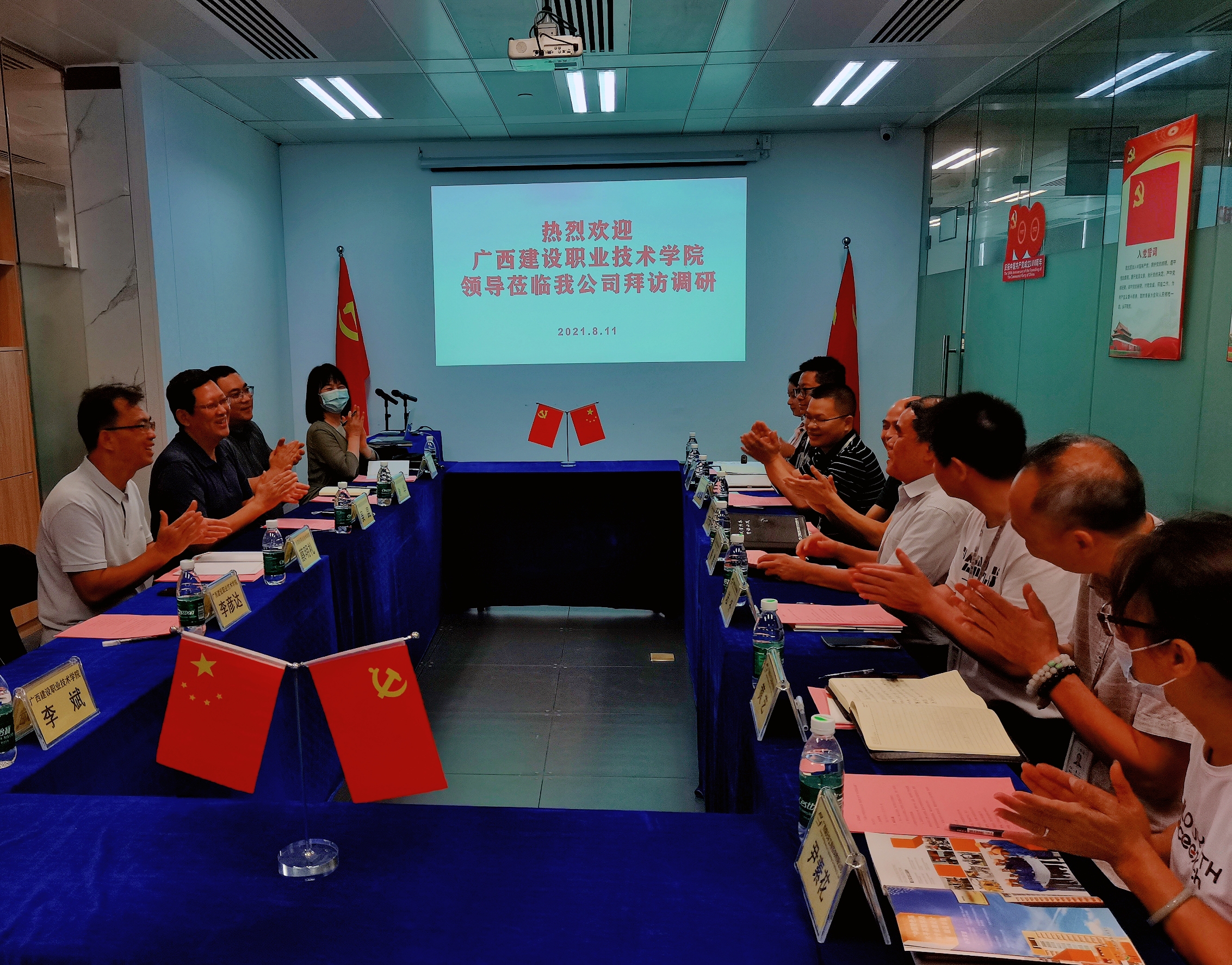 為進(jìn)一步深化產(chǎn)教融合,促進(jìn)校企合作全面發(fā)展,8月11日下午,由廣西建設(shè)職業(yè)技術(shù)學(xué)院黨委副書記、院長(zhǎng)吳昆帶隊(duì),一行共6人赴我公司拜訪調(diào)研。