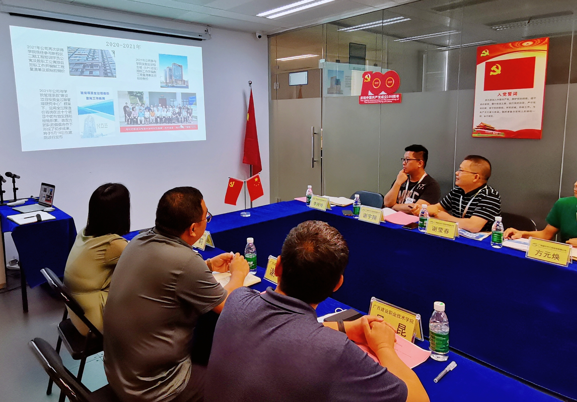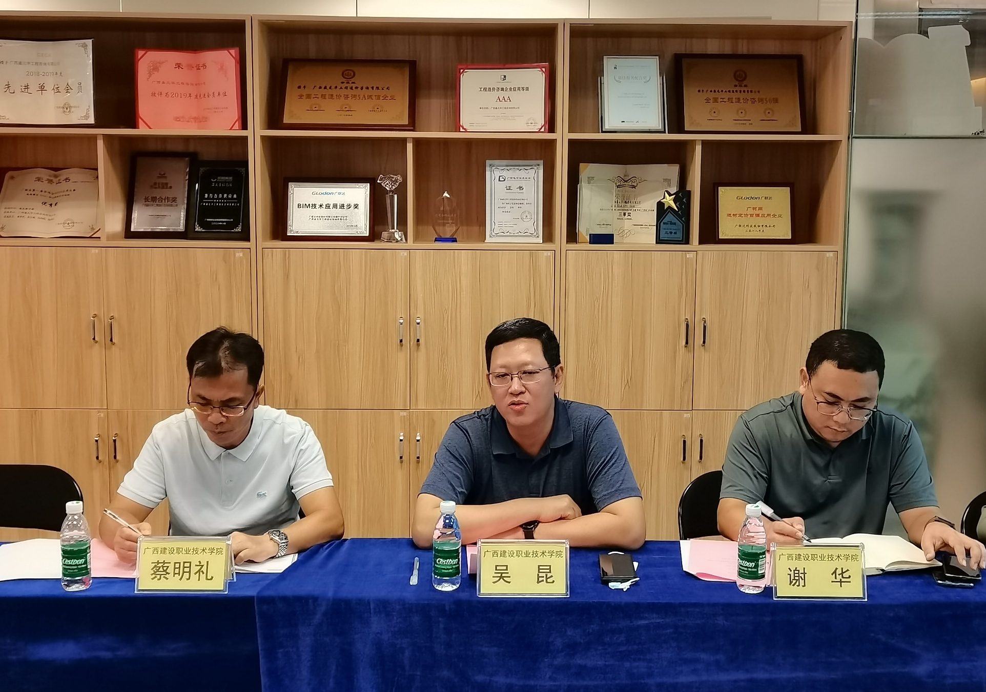 廣西建設(shè)職業(yè)技術(shù)學(xué)院黨委副書記、院長(zhǎng)吳昆,管理工程系黨總支書蔡明禮,管理工程系副主任記謝華,招生就業(yè)處校企科科長(zhǎng)李彥達(dá),工程造價(jià)團(tuán)隊(duì)負(fù)責(zé)人程莉,工程造價(jià)專業(yè)專任教師李斌。我公司董事長(zhǎng)方元煥,總經(jīng)理陳浩,黨支部書記、常務(wù)副總經(jīng)理謝瑩春,副總經(jīng)理陸冬,副總經(jīng)理黃藝,總經(jīng)理助理、總工辦總工程師謝宇翔,建院分公司負(fù)責(zé)人尹素花,公司國(guó)家注冊(cè)安裝一級(jí)造價(jià)工程師李玲玲出席了調(diào)研座談會(huì)。